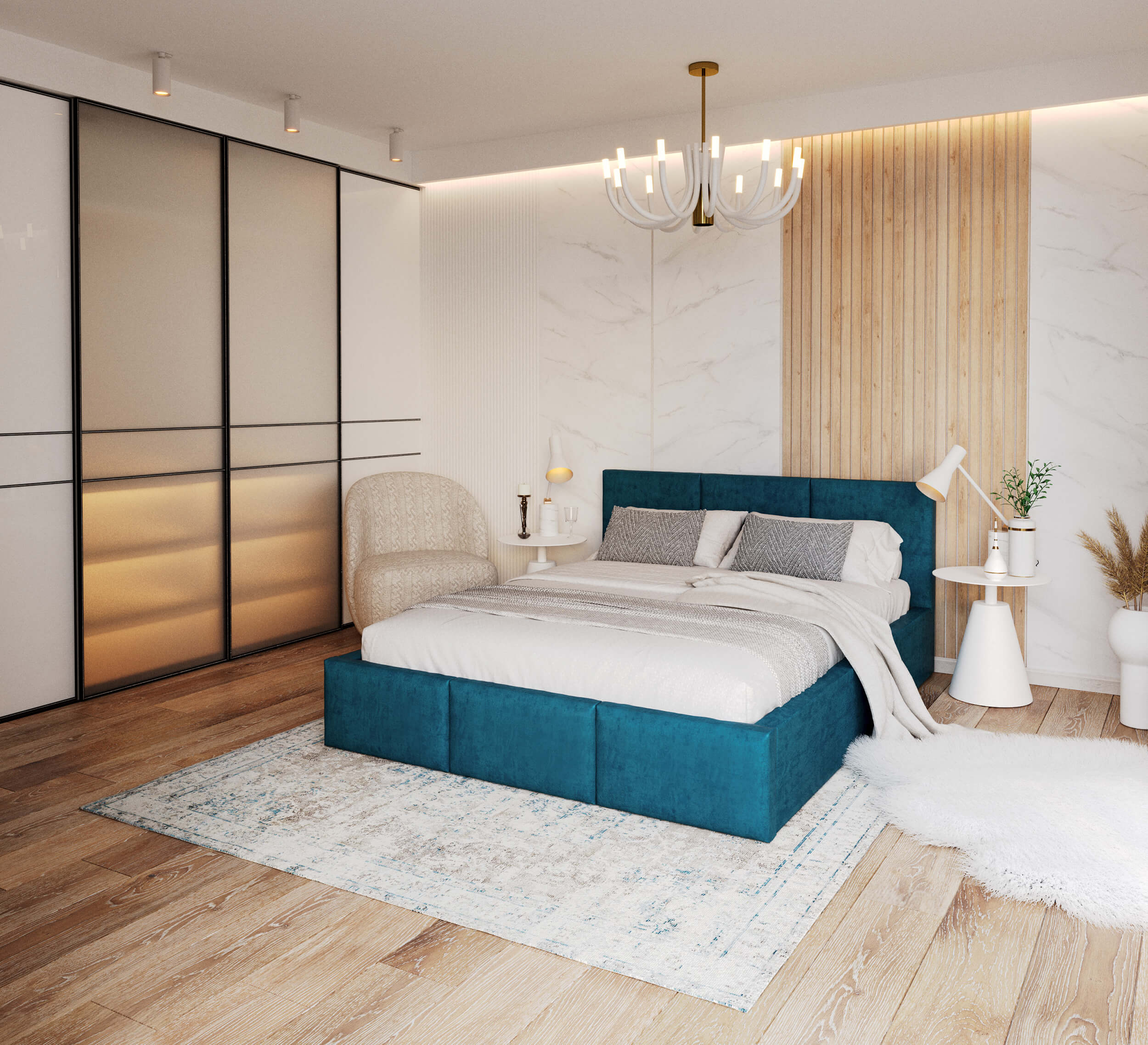 Łóżko tapicerowane FRESIA 160x200 cm kolor turkusowy
